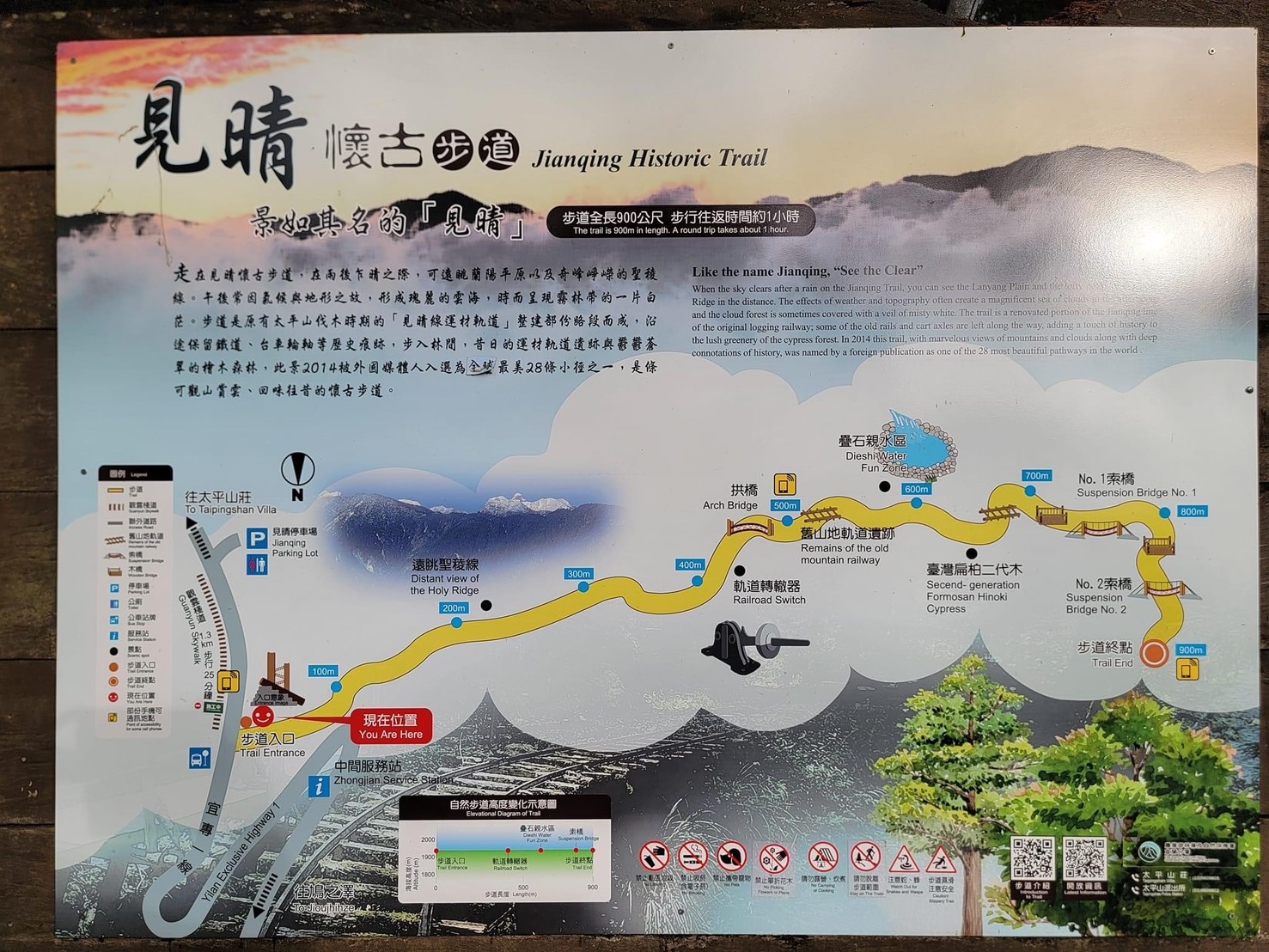 見晴懷古步道位於太平山國家森林公園裡,全長0.9公里,沿路平緩好走還有木椅可以休憩,一直是太平山相當熱門的景點,近期全新打造了見晴停車場、全新觀雲棧道,需要到見晴懷古步道需要先把車停在見晴停車場,接著步行2.2km觀雲棧道才可抵達見晴懷古步道的出入口,全長來回約4.4km,建議停留時間二小時內左右。